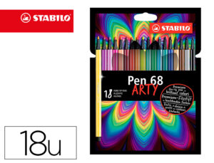 Marcador stabilo aguarelavel pen 68 estojo cartao de 18 unidades cores sortidas